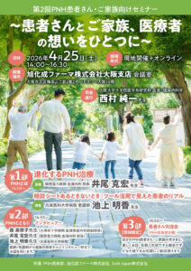 旭化成ファーマ株式会社は、2026年4月25日(土)、「第2回PNH患者さん・ご家族向けセミナー~患者さんとご家族、医療者の想いをひとつに~」を対面とオンラインのハイブリッドで開催します。 PNH(発作性夜間ヘモグロ […]